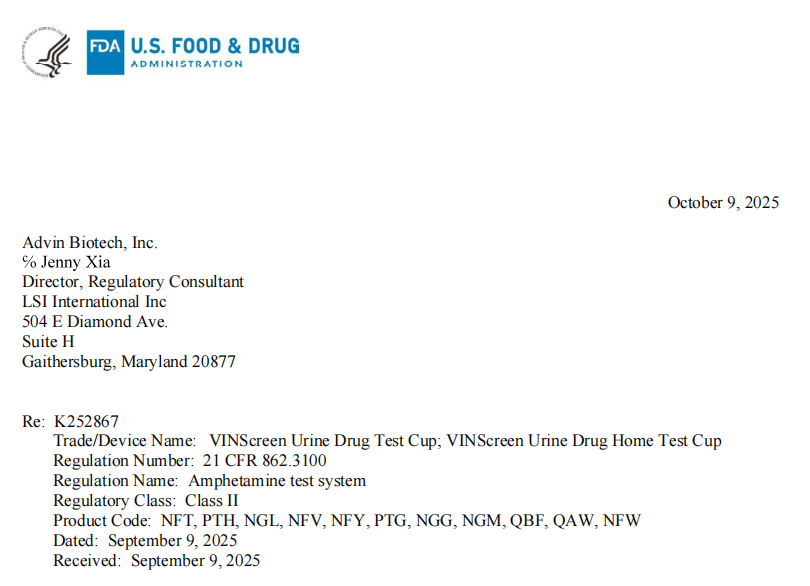 Advin Biotech作为博拓生物旗下重要子公司,始终专注于药物滥用检测技术的研发与创新。此次VINScreenTM尿液毒品检测杯获得FDA许可,进一步巩固了其在美国药物滥用快速检测领域的领先地位。公司将继续秉承“创新、精准、高效”的理念,其产品以卓越的性能和可靠的品质,服务全球客户,为守护人类健康贡献着“博拓力量”。