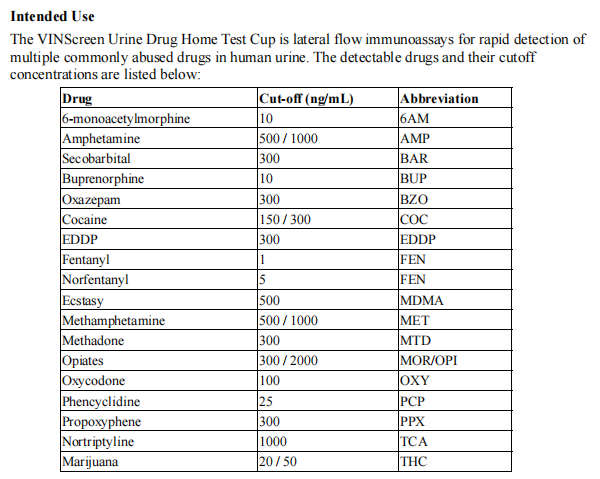 VINScreen Urine Drug Home Test Cup采用免疫层析法,可快速检测人体尿液中18项常见滥用药物/代谢物。