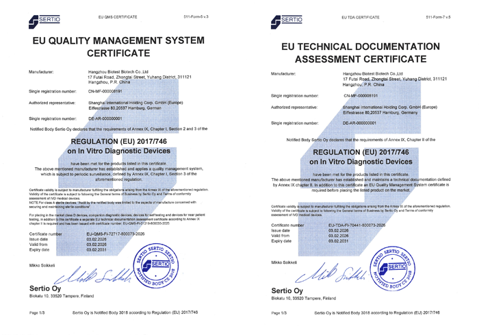 Sertio Oy作为欧盟IVDR官方授权的公告机构,其颁发的认证具备全球公信力。此次产品顺利获证,不仅是对博拓生物研发实力、生产质控水平的高度认可,更彰显了公司产品与国际高标准的全面接轨,为后续拓展全球市场奠定了坚实的合规基础。